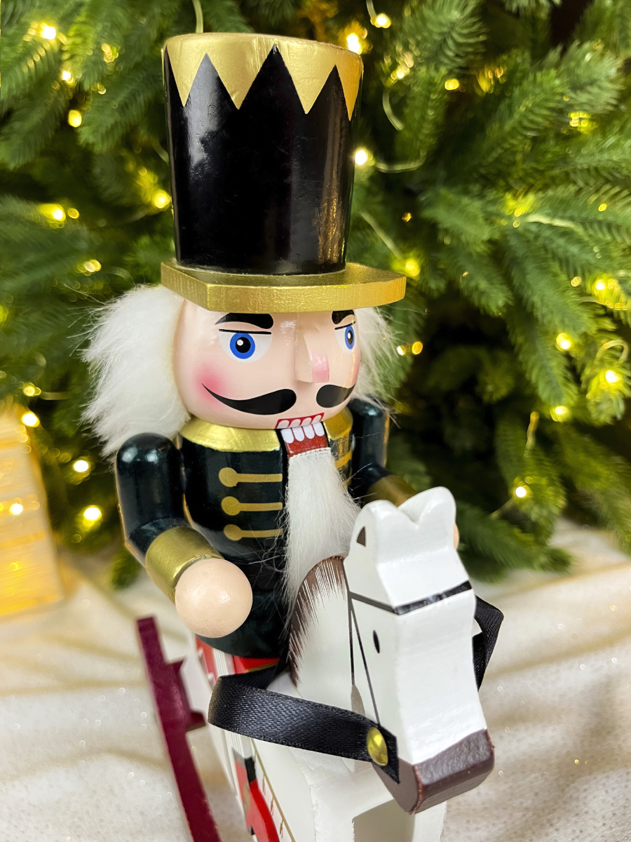 Фигурка "Щелкунчик на лошадке" синий дерево 28х23 Р-7191(C)