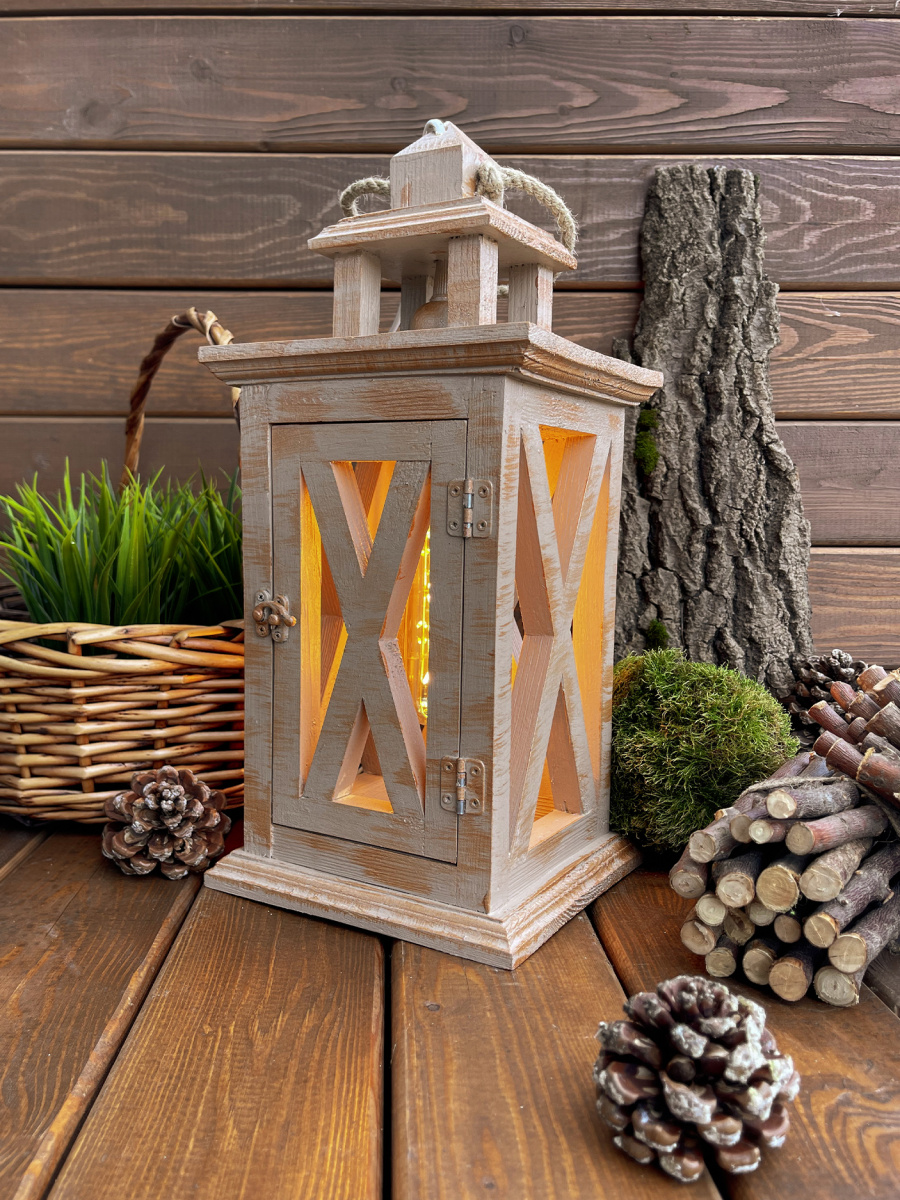 Фонарь декоративный деревянный бежевый V-26Теплое прикосновение