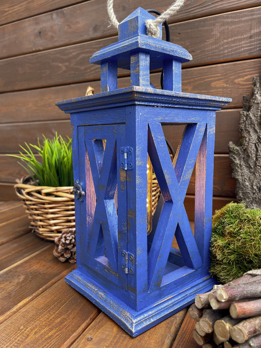 Фонарь декоративный деревянный  индиго V-18Индиго