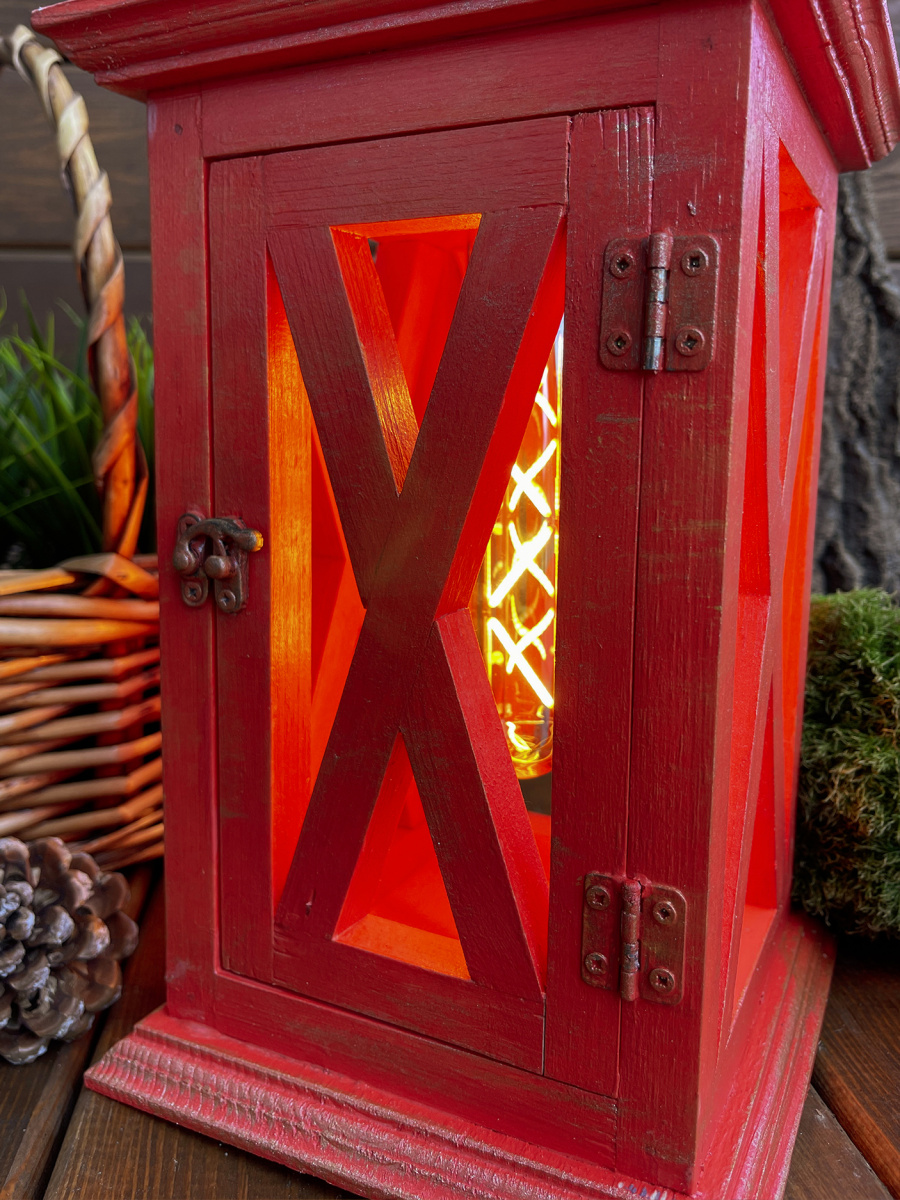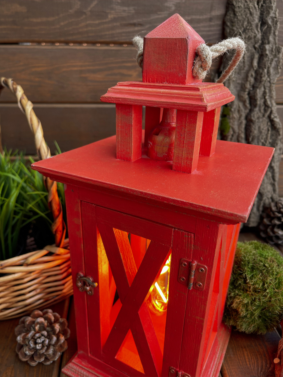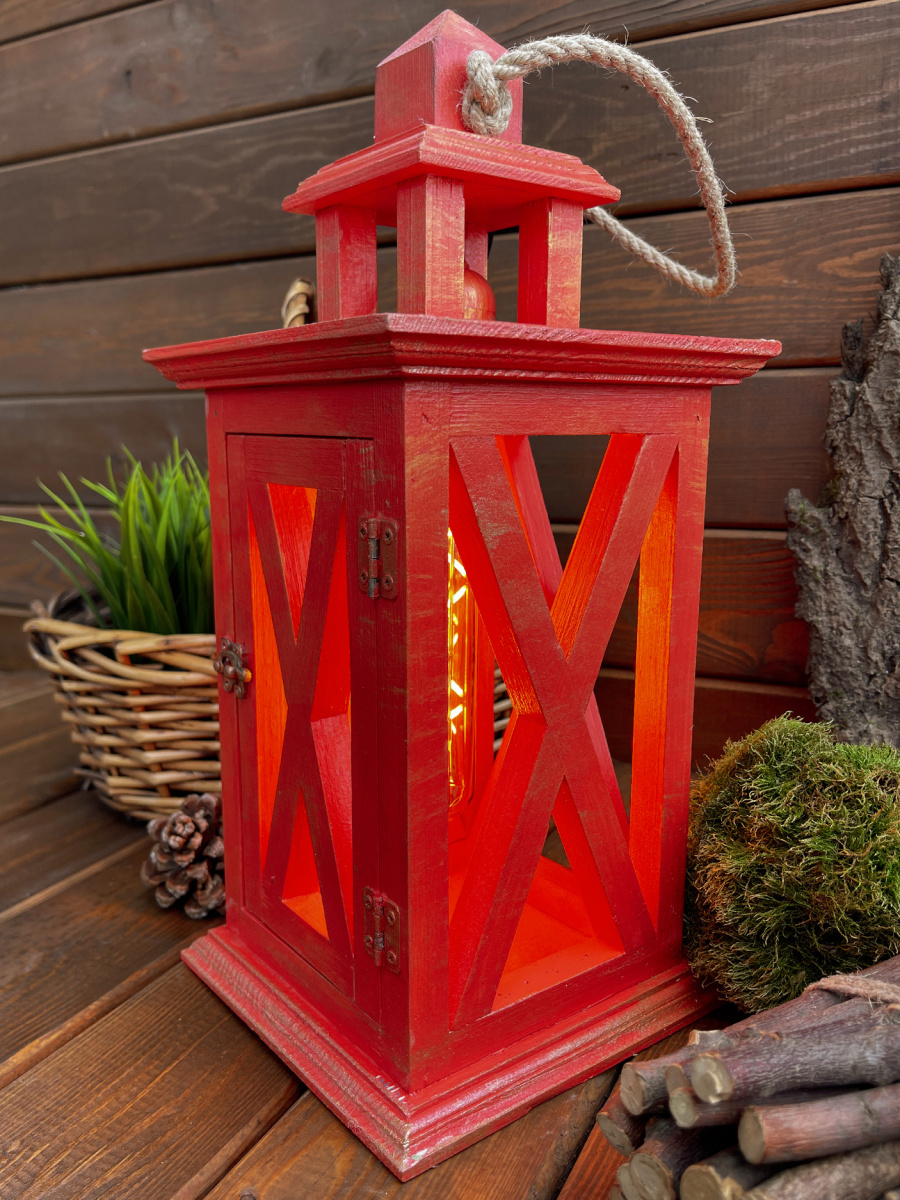 Фонарь декоративный деревянный  красный V-20Красная помада