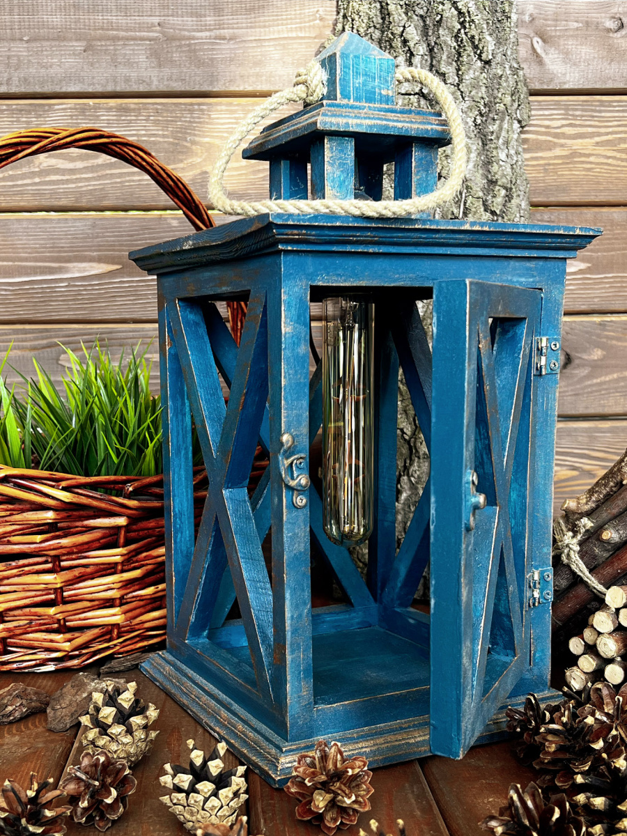 Фонарь декоративный деревянный  лазурный V-13Глубокие чувства - большой