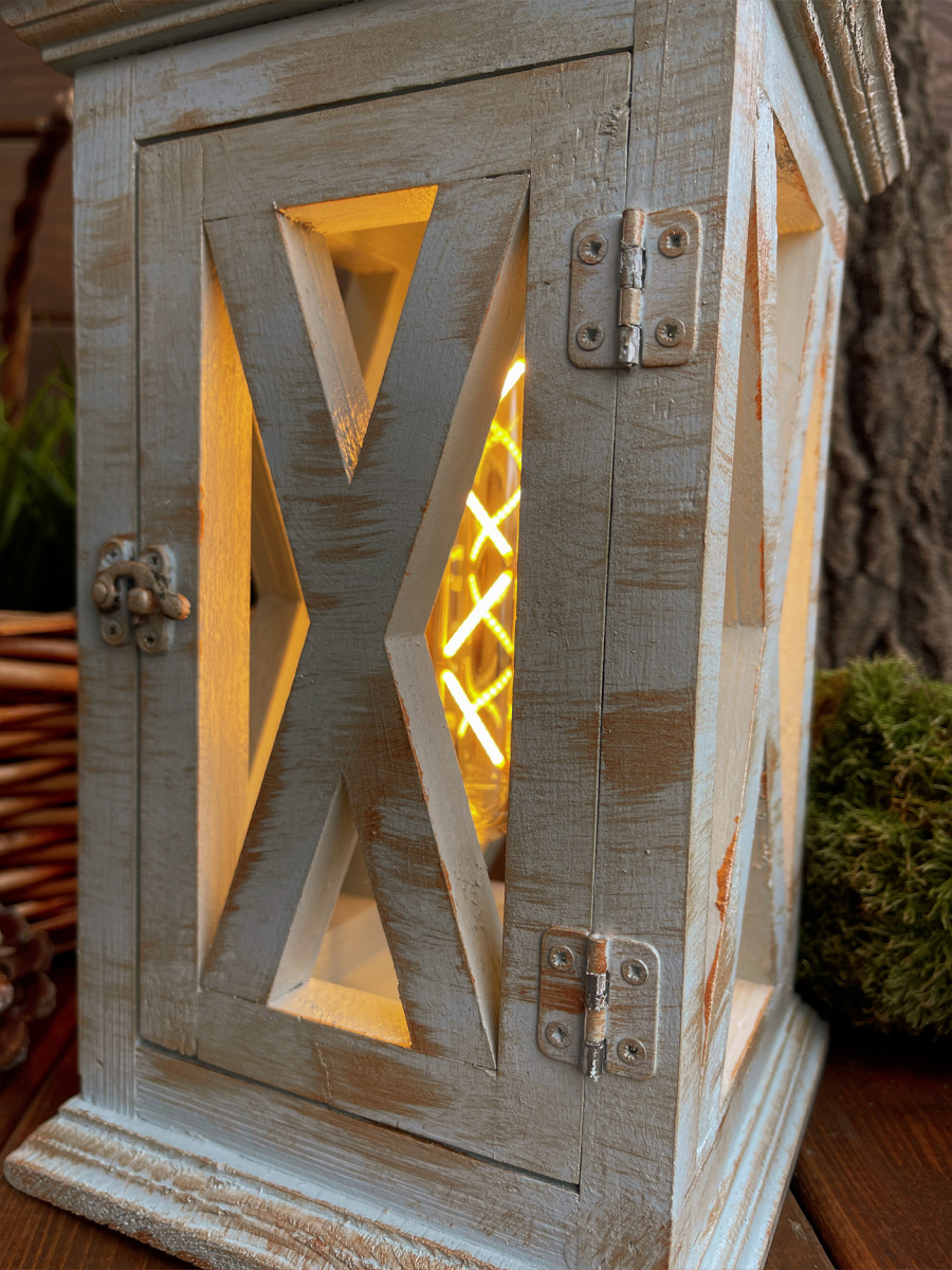 Фонарь декоративный деревянный серо-голубой V-24Сензария