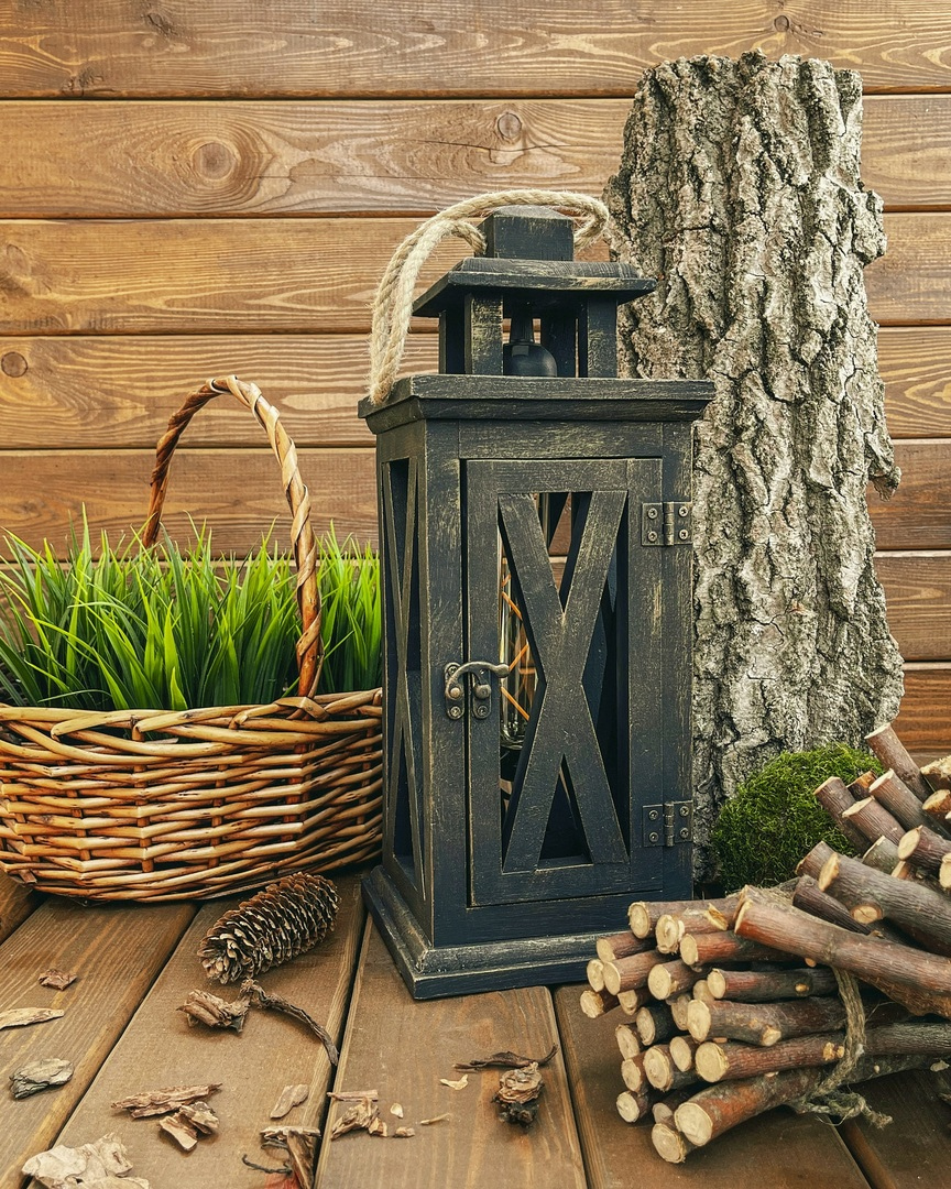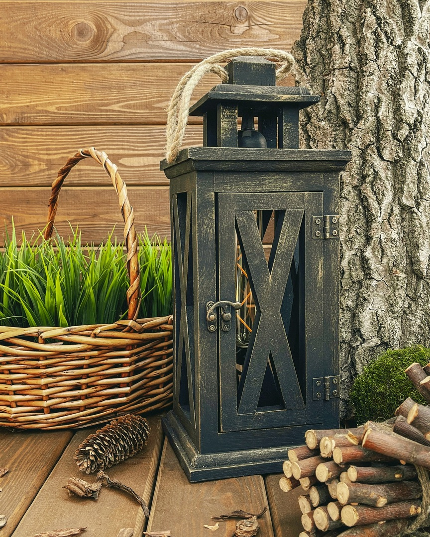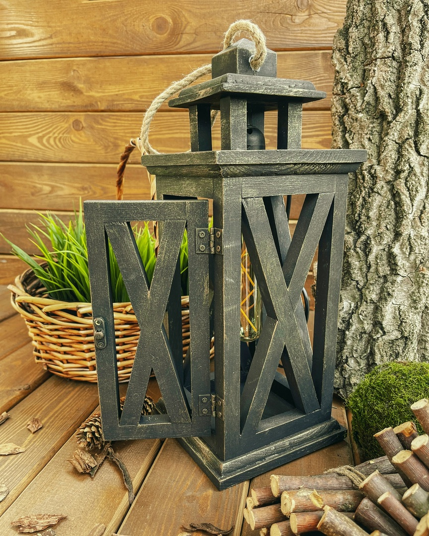 Фонарь декоративный деревянный темно-серый V-11Черный бархат