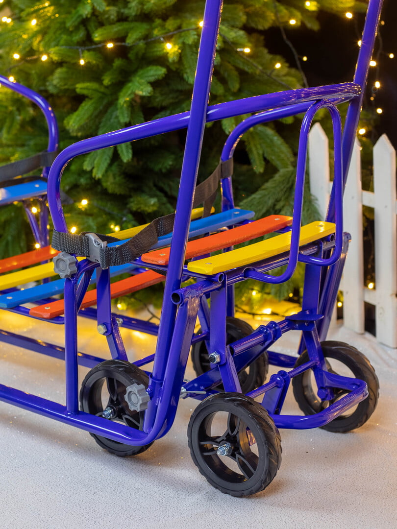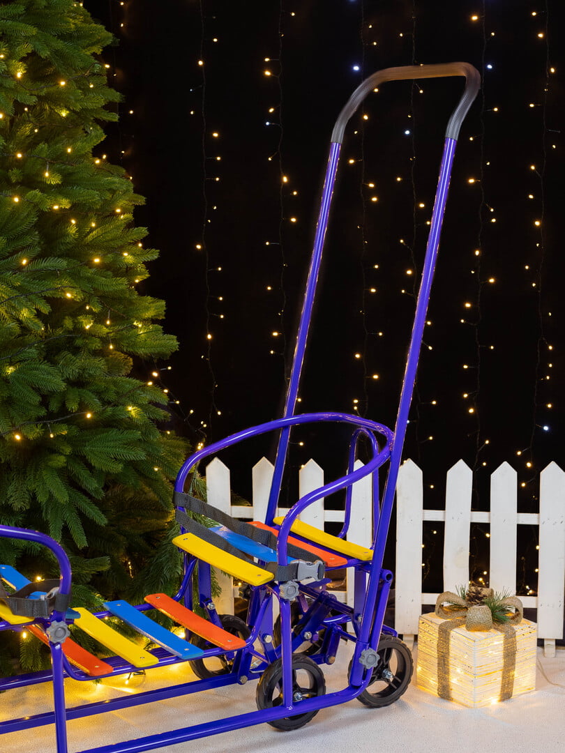 Модель предусматривает высокую ручку для того, кто толкает санки.
