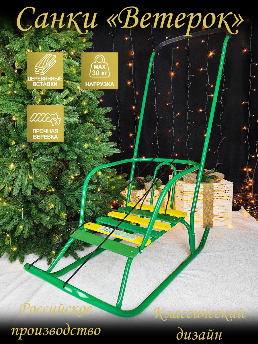 Санки с ручкой детские Ветерок 6 зеленый 7082444/В6/32