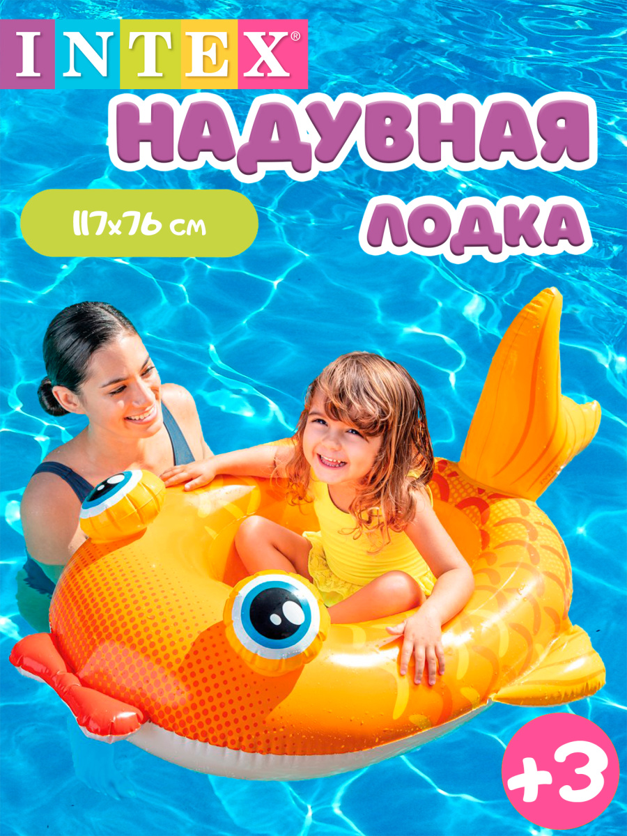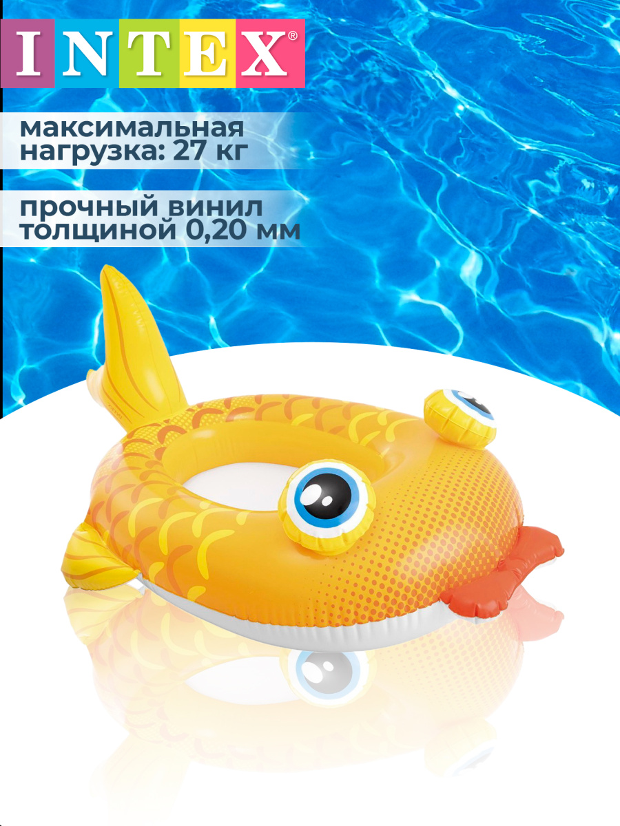 Надувная лодка"рыбка" 107х69см Intex 59380 - это яркий, красивый надувной плот для детей научит их держаться на воде. Изготовлен из прочного винила толщиной 0,25 мм.