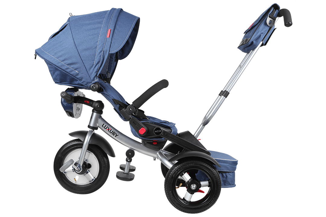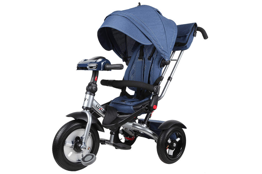 Luxury - усовершенствованная модель популярного детского трехколесного велосипеда-коляски для малышей с ручкой. Большие надувные колеса обеспечивают хорошую проходимость, поэтому малыш сможет крепко спать, пока коляска плавно едет под управлением родителей. Во время бодрствования ребенок не будет скучать благодаря не раздражающим музыкальным и световым сигналам.
