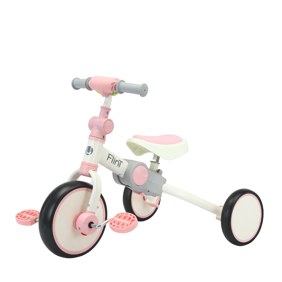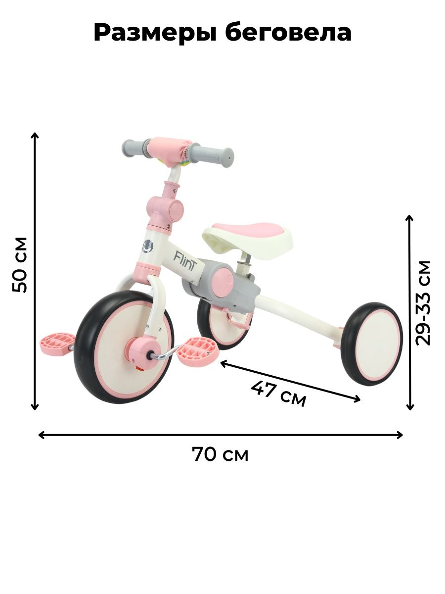 Для безопасности малыша предусмотрен режим холостого хода у педалей, поворот переднего колеса ограничен 20 градусами и прорезиненные ручки на руле для надежного хвата руля. Телескопическая родительская съемная ручка, которая подойдет под любой рост. Сиденье регулируется по высоте и подходит как для мальчиков, так и для девочек. Простой механизм трансформации и небольшие габариты в сложенном виде позволят брать беговел Flint на каждую прогулку или в дорогу.