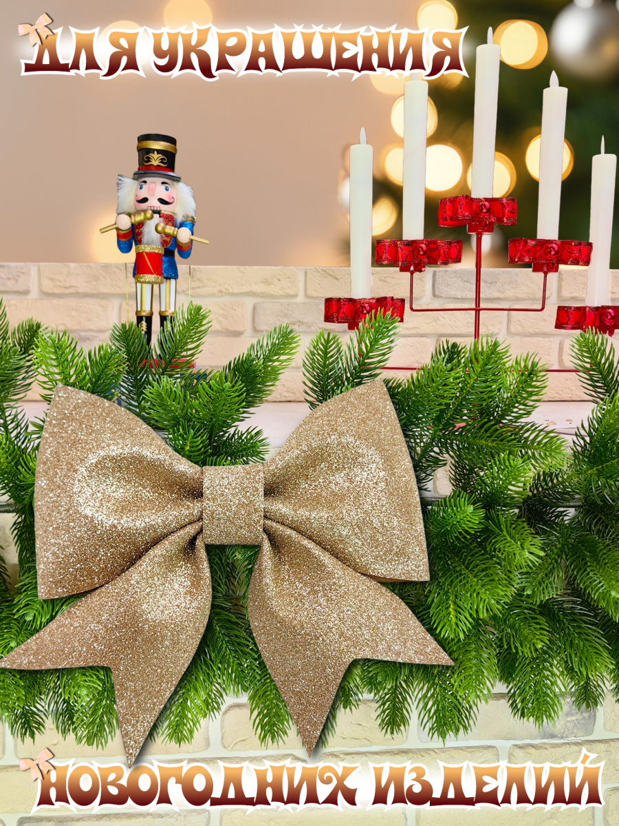 Декоративный бант "Елочные сказки" из фоамирана станет прекрасным дополнением к вашему декору, на праздник, торжество или просто для души. Этот рельефный бант с острыми очертаниями из плотного и блестящего фоамирана придаст праздничное настроение любому интерьеру. Его дорогой розово-золотой цвет и праздничный дизайн в виде банта, идеально впишутся в общую тематику праздника. Бант можно использовать как украшение для елки, интерьера и просто для создания акцентных элементов, создавая атмосферу уюта и волшебства. Также, подойдет для украшения подарочных коробок. Фоамиран — это мягкий, легкий, пластичный полимерный материал, его ключевыми характеристиками являются гибкость, плотность и разнообразие цветов. Данный материал не теряет цвет и не деформируется со временем, поэтому ваш бант долго будет радовать вас своей красотой. Бант имеет выпуски из декоративной проволоки для удобного крепления +- 10 см.