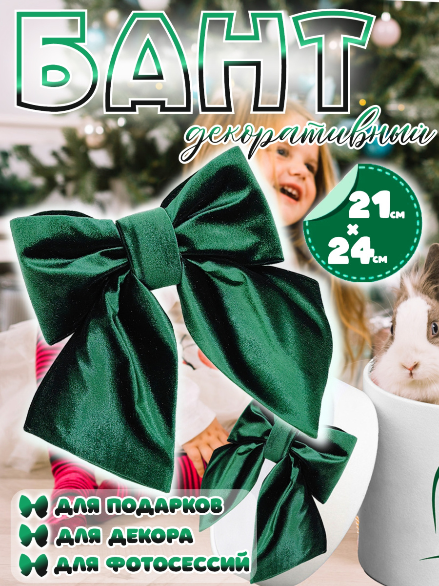 Декоративный бант "Елочные сказки" станет прекрасным дополнением к вашему декору, на праздник, торжество или просто для души. Этот изящный бант из мягкого велюра, с подложкой из вспененного полиэтилена, придаст праздничное настроение любому интерьеру. Его богатый темно-зеленый цвет и дизайн в виде банта, идеально впишутся в общую тематику праздника. Бант можно использовать как украшение для елки, для волос, для создания акцентных элементов одежды, а также для декора дома, мебели, создавая атмосферу уюта и волшебства. Также, подойдет для украшения подарочных коробок. Для использования в интерьере, для одежды и волос, требуется дополнительное крепление (в комплект не входит).