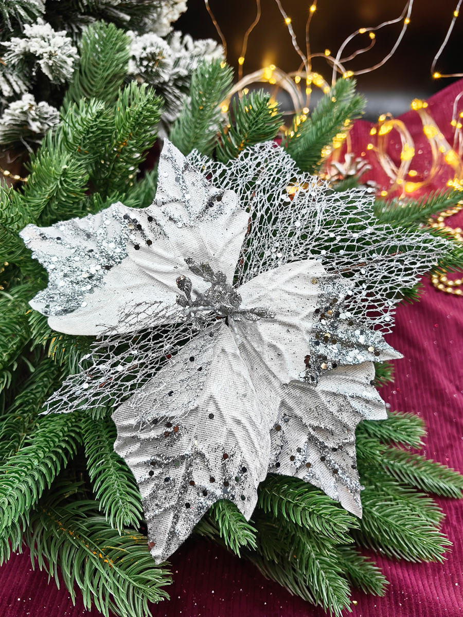 Цветок белый/серебристый d 24 см Р-7553