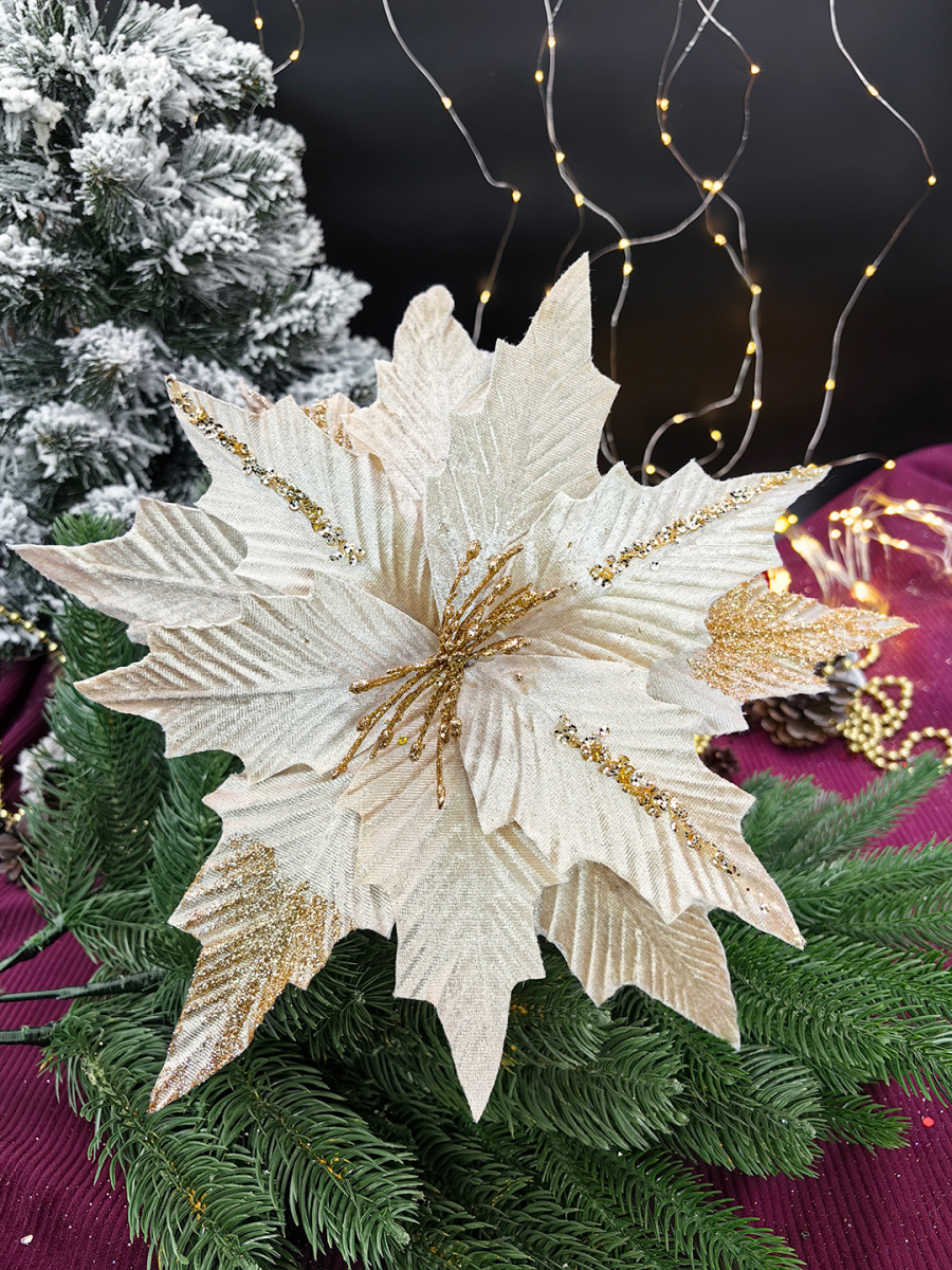 Цветок искусственный декоративный новогодний, d 32 см, цвет бежевый, арт. MG24630