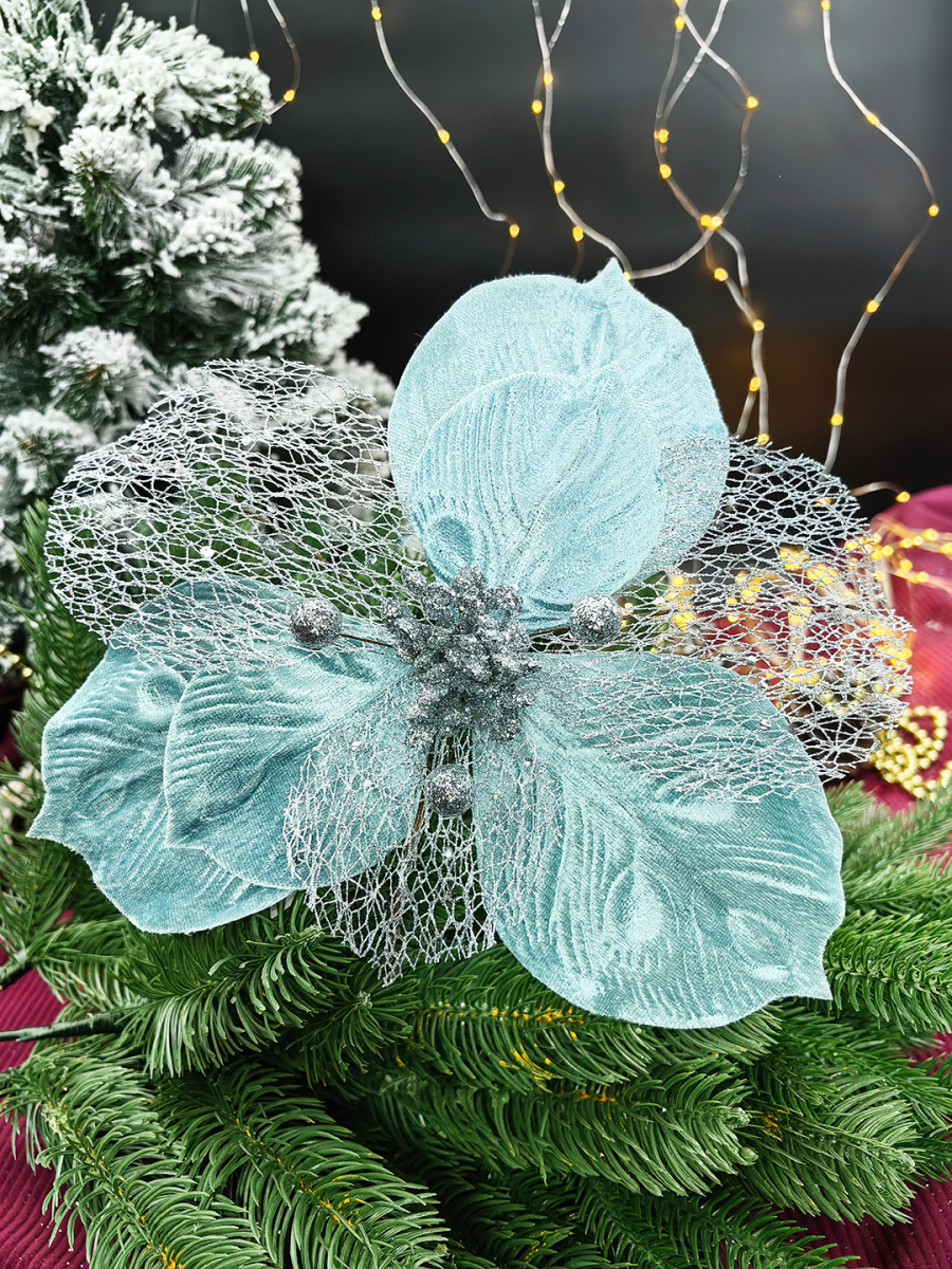 Цветок искусственный декоративный новогодний, d 25 см, цвет мятный, арт. MG24572