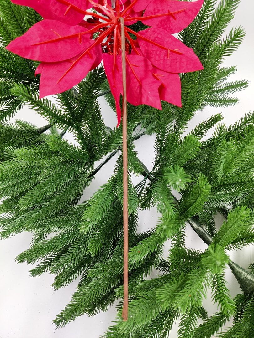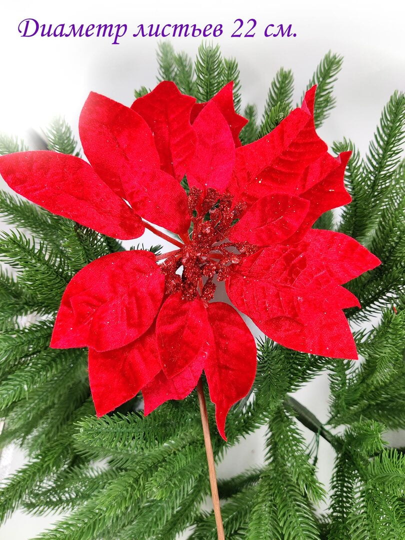 Новогодний декор в виде бантика, ленты, бус, цветов и веток украсит интерьер дома или офиса в преддверии Нового года. Оригинальный дизайн и красочное исполнение создадут праздничное настроение. Новогодние украшения всегда несут в себе волшебство и красоту праздника. Создайте в своем доме атмосферу тепла, веселья и радости, украшая его всей семьей.Диаметр листьев в развернутом виде до 22 см.