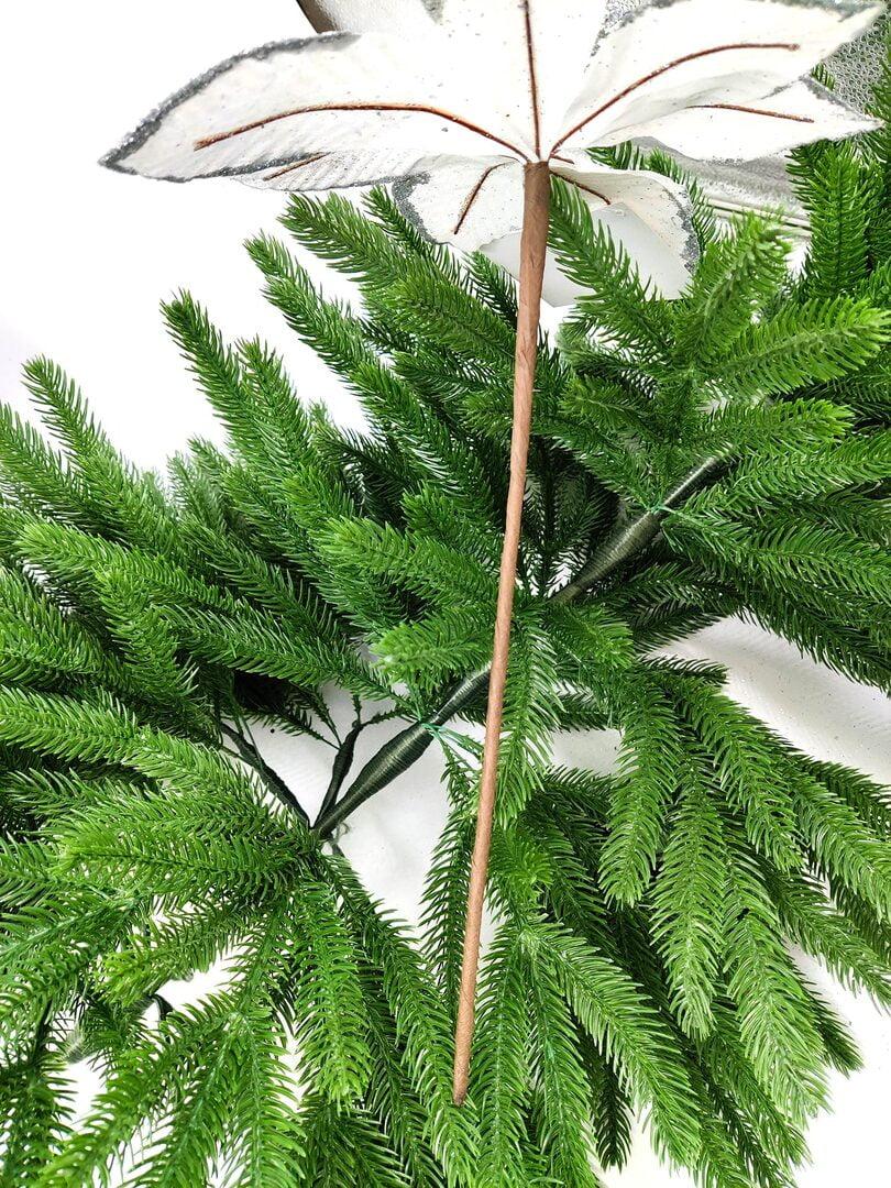 Новогодний декор в виде бантика, ленты, бус, цветов и веток украсит интерьер дома или офиса в преддверии Нового года. Оригинальный дизайн и красочное исполнение создадут праздничное настроение. Новогодние украшения всегда несут в себе волшебство и красоту праздника. Создайте в своем доме атмосферу тепла, веселья и радости, украшая его всей семьей.Диаметр листьев в развернутом виде до 25 см.