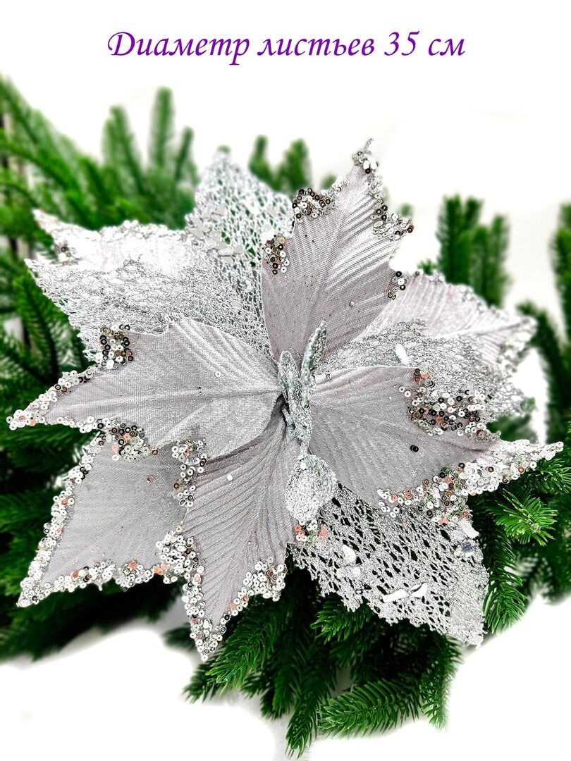 Цветок серебро d 35 см Flo-12-5S
