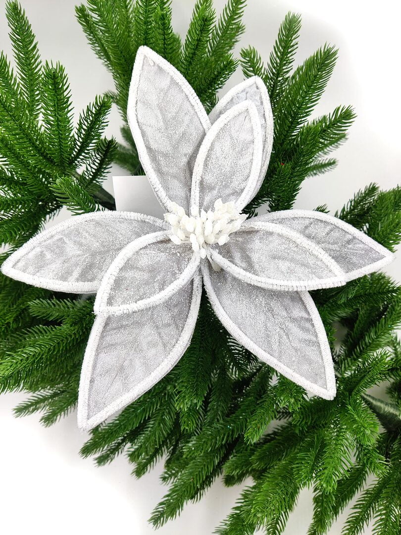 Новогодний декор в виде бантика, ленты, бус, цветов и веток украсит интерьер дома или офиса в преддверии Нового года. Оригинальный дизайн и красочное исполнение создадут праздничное настроение. Новогодние украшения всегда несут в себе волшебство и красоту праздника. Создайте в своем доме атмосферу тепла, веселья и радости, украшая его всей семьей.Диаметр листьев в развернутом виде до 28 см.