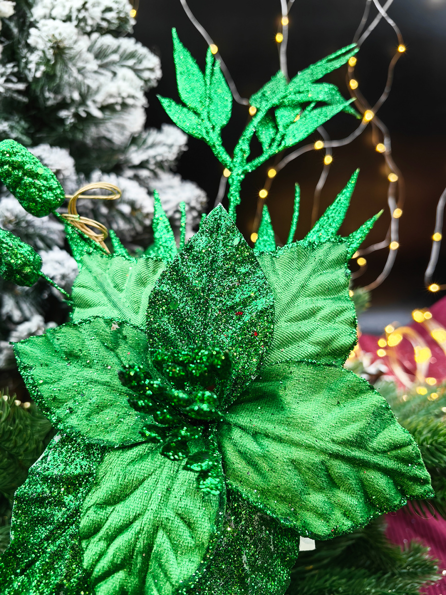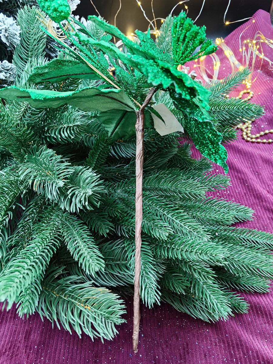Размеры: сам цветок диаметром 19 см, длина ножки 19 см, длина веточки в блестках 25 см от центра цветка.