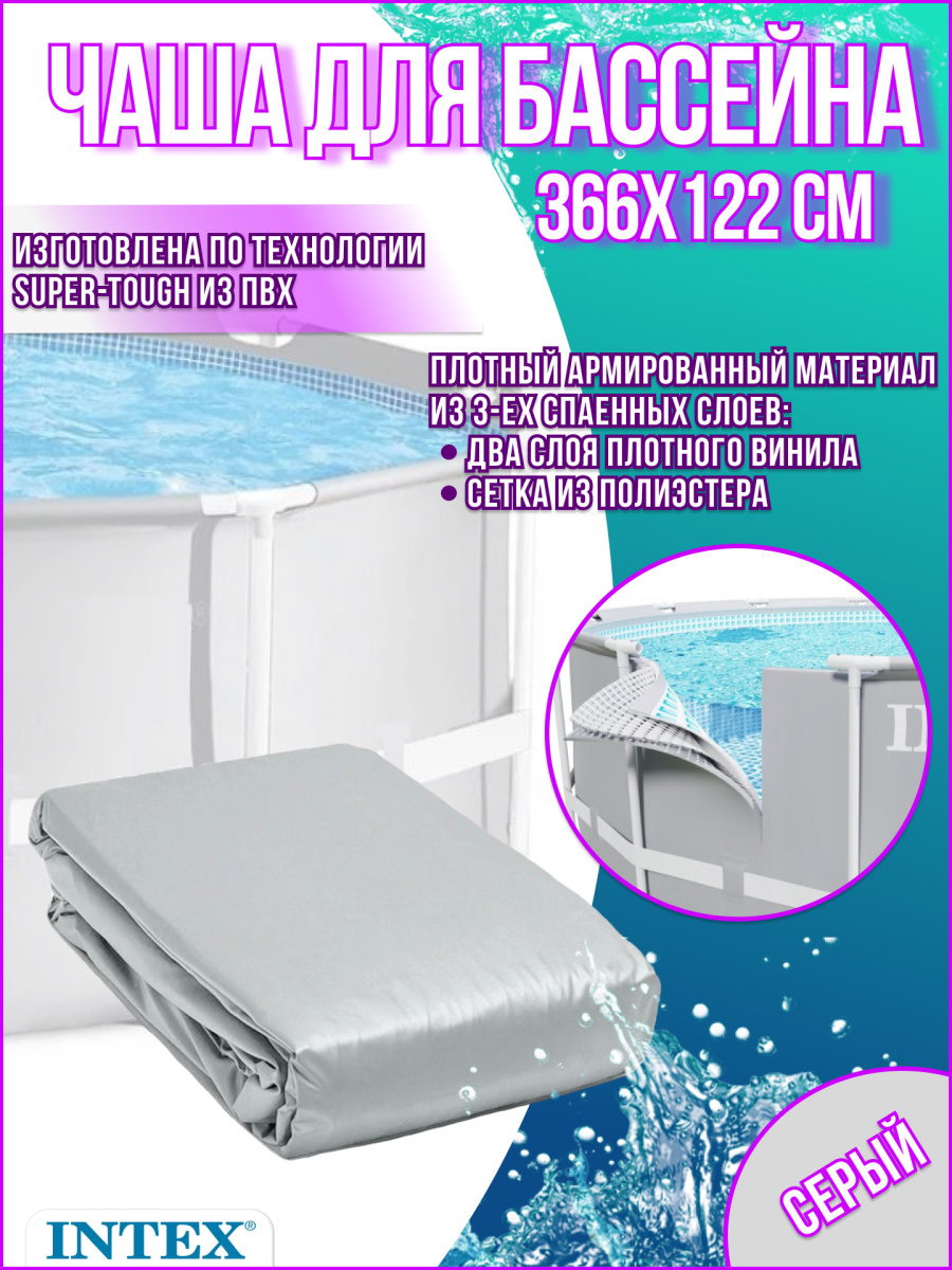 Чаша для каркасного бассейна Intex Priism Frame 10087 Изготовлена по технологии SUPER-TOUGH из ПВХ. Это плотный армированный материал из трех спаенных слоев: два слоя плотного винила и сетка из полиэстера. Такое сочетание наделяет материал огромным запасом прочности. В чаше имеются отверстия для подключения фильтрационного оборудования и сливной клапан снизу. Если по какой-либо причине чашковый пакет вашего бассейна вышел из строя и не подлежит ремонту - эта чаша позволит сэкономить на покупке нового каркасного бассейна Intex и за небольшие деньги и восстановить бассейн. Совместима с бассейнами Intex размером 366*122см.