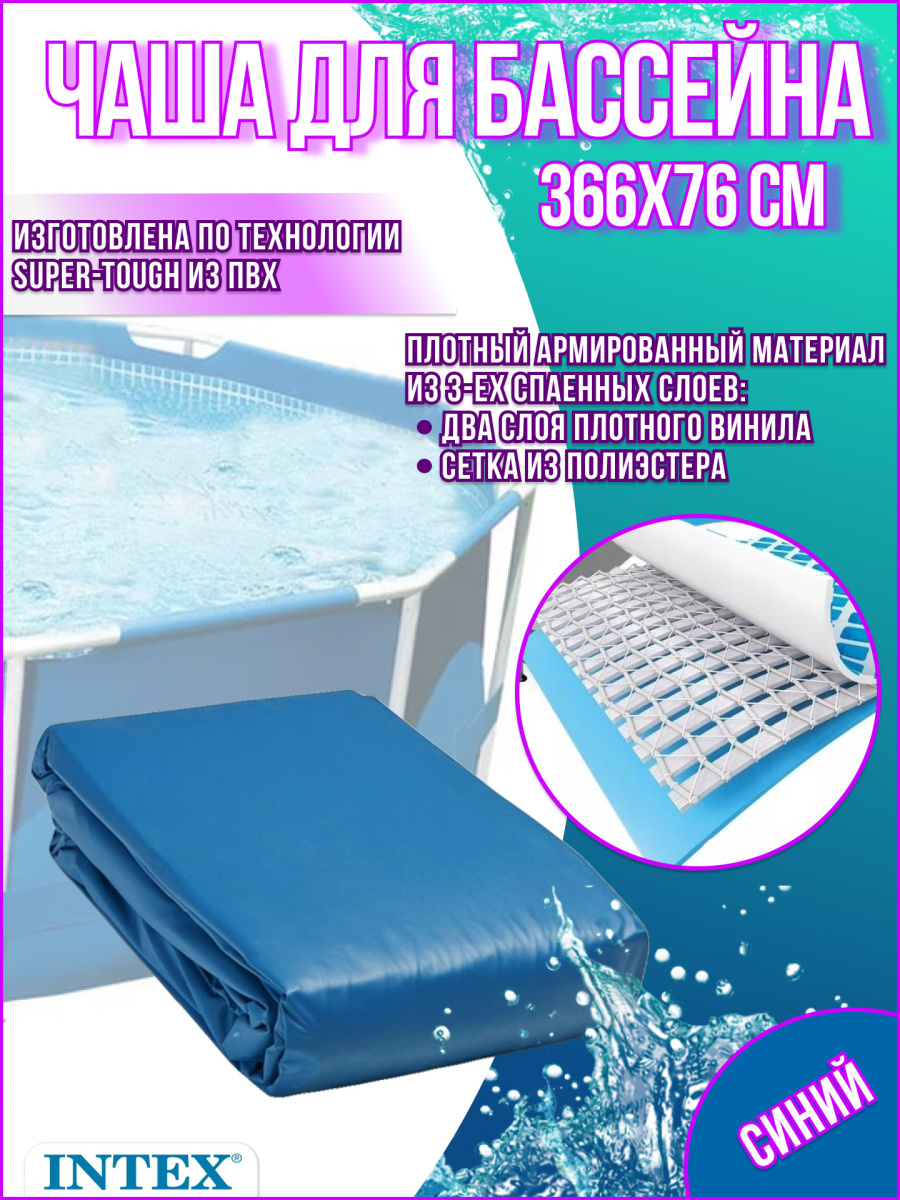 Чаша для каркасного бассейна серии Metal Frame Pool Изготовлена по технологии SUPER-TOUGH из ПВХ. Это плотный армированный материал из трех спаенных слоев: два слоя плотного винила и сетка из полиэстера. Такое сочетание наделяет материал огромным запасом прочности. В чаше имеются отверстия для подключения фильтрационного оборудования и сливной клапан снизу. Если по какой-либо причине чашковый пакет вашего бассейна вышел из строя и не подлежит ремонту - эта чаша позволит сэкономить на покупке нового каркасного бассейна Intex и за небольшие деньги восстановить бассейн. Совместима с бассейнами Intex размером 366*76 см.