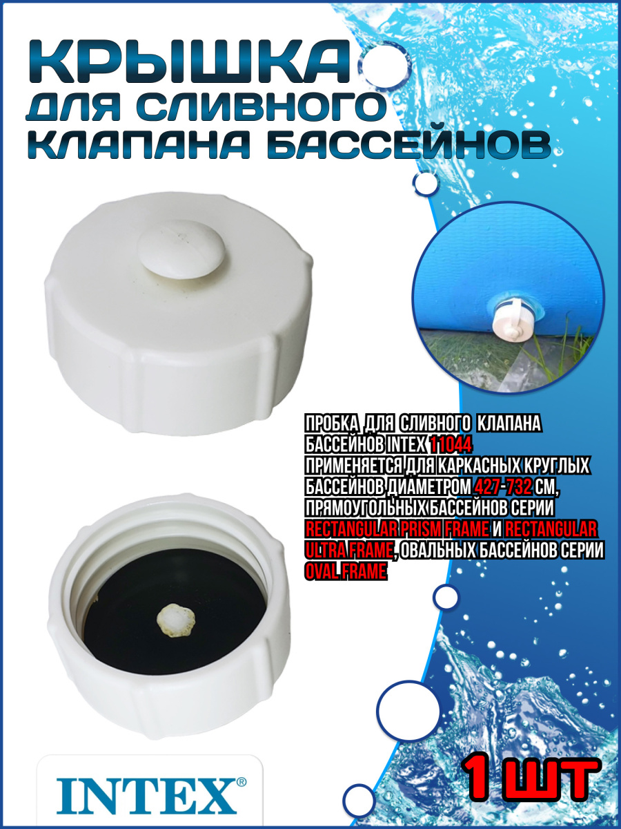 Накручивающаяся крышка для сливного клапана бассейнов Intex 11044 применяется для каркасных круглых бассейнов диаметром 427-732 см., прямоугольных бассейнов серии Rectangular Prism Frame и Rectangular Ultra Frame, овальных бассейнов серии Oval Frame